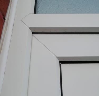 If your having problems locking a upvc door then we can help. Accounting for over 70% of all doors in the UK at Locksmith Great Sankey we are working on these types of doors and locks every week. A lot of the time its simply that a door has dropped and the lock is not aligned with the door keeps causing the locking problem. One way of checking this is by looking at the mitres on the outside of the door (see picture above) when a door drops the mitres will not line up. If you need a door locking problem solving give Lockkeys Locksmiths Great Sankey a call on 07855 867422 and speak with Derek or Pam.