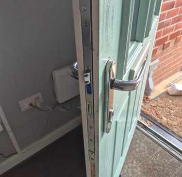 To do this we used what is called a overnight lock, its actually a temporary lock which allows the customer to lock and unlock the door as normal. Once the new lock arrived we went back and put the new multipoint lock in for them.